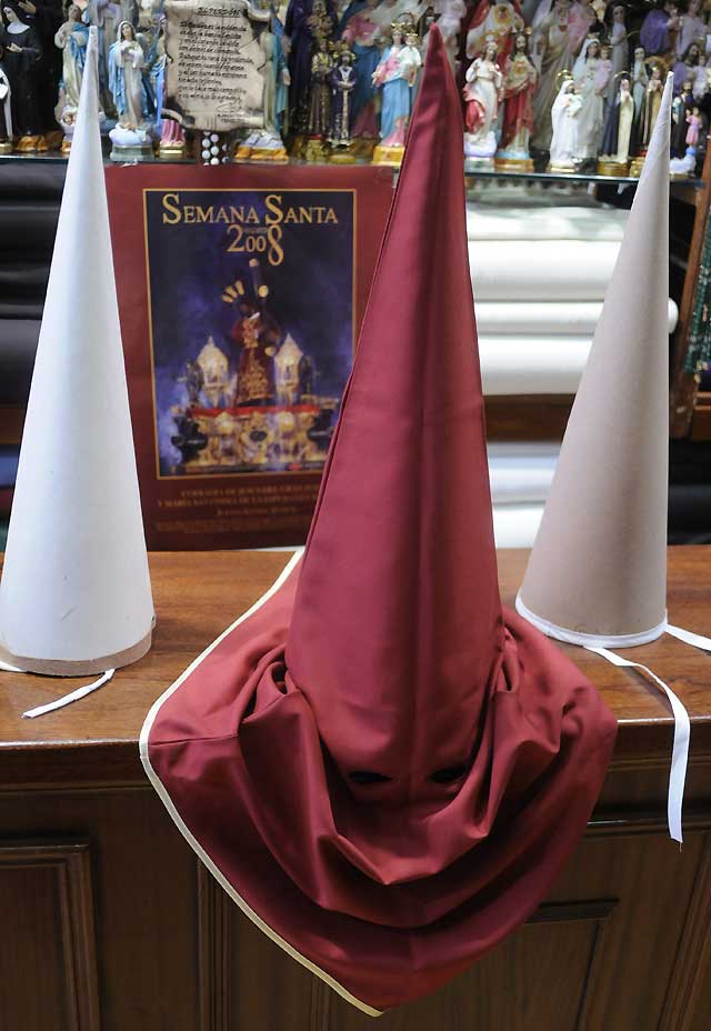 Entre 140 y 500 euros vale una túnica de nazareno, aparte el capirote y otros complementos, explica María del Río que regenta la antigua Casa Rodríguez de Sevilla, abierta todo el año, pero dedicada exclusivamente a la Semana Santa.