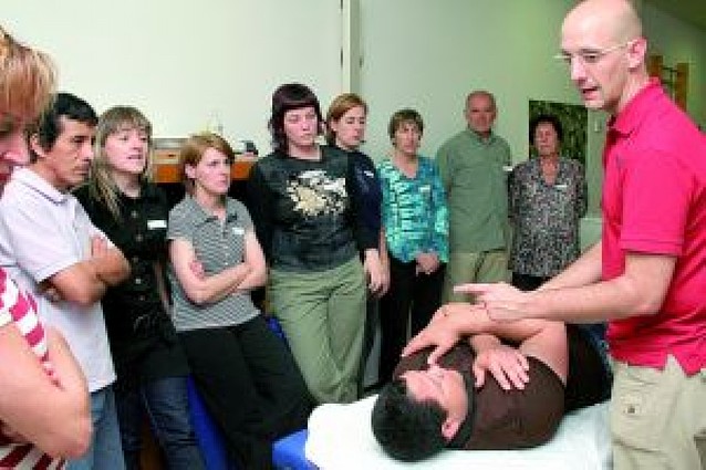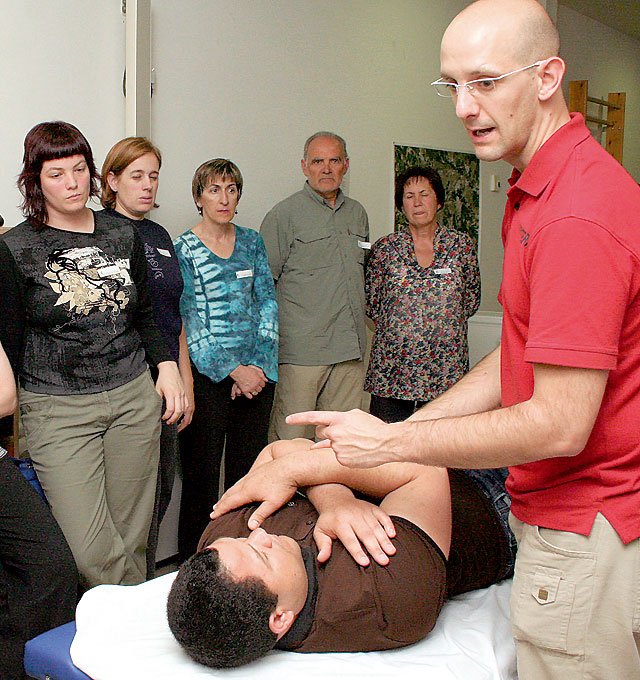 Así, durante estos cursos los alumnos han aprendido diferentes técnicas de movilización, de volteo y desplazamiento, de transferencia de la cama a la silla de ruedas y viceversa y de la silla a la ducha o al WC, de control postural, de acompañamiento en la marcha, de cómo prevenir escaras en pacientes encamados, etc., así como maniobras de relajación, posturas de descarga y ejercicios preventivos de todo tipo.