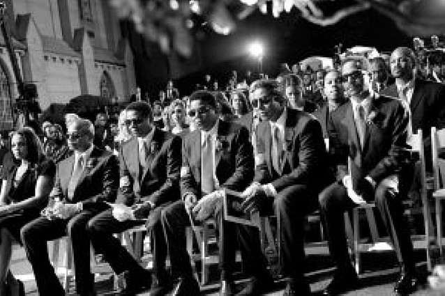 Los hermanos Jackson, vestidos todos exactamente igual, con traje negro, corbata roja y el característico guante blanco de Michael en una mano, ocuparon la primera fila de asientos. REUTERS