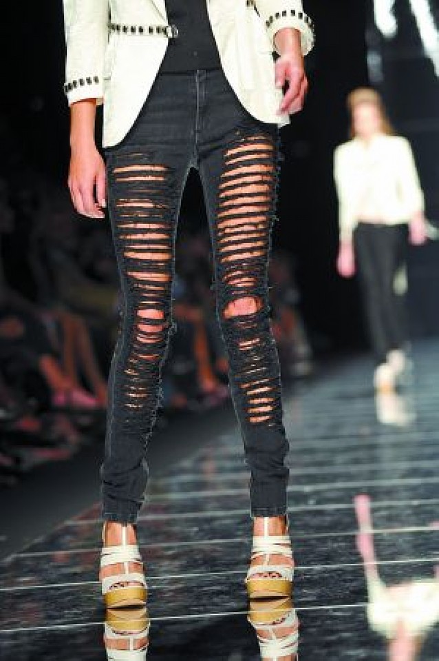 Una de las propuestas de John Richmond, atrevida y con aire punk. EFE