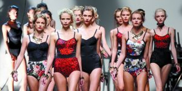 Inspiración española para Dolce&Gabbana, en una colección protagonizada por una mujer sensual vestida con encajes o por una jovencita con pantalones estrechos y chaleco sin espalda. Faldas que recuerdan a un echarpe español con encajes, volantes y ribetes, así como toques de evocación siciliana infundidos por el filme El Gatopardo de Luchino Visconti, son las tarjetas de presentación de la colección de los modistos italianos.